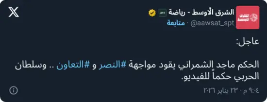 وفي هذا السياق، علّق الإعلامي الرياضي عبدالرحمن الجماز قائلًا: “النصر يرفض من جديد استقدام حكم أجنبي لمباراته، خلاص اللعبة أصبحت مكشوفة ومفضوحة، المحلي والدفدفة”.