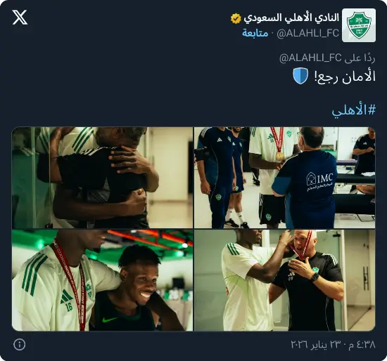 من جهتها، تعاملت إدارة الأهلي مع الموقف بهدوء، حيث أوضحت للحارس أن التغريدة لم تكن موجهة ضده بشكل شخصي، بل جاءت ضمن التفاعل الطبيعي مع عودة ميندي، مؤكدة تقديرها لما قدمه، مع تقديم اعتذار له في حال أسيء فهم التغريدة.