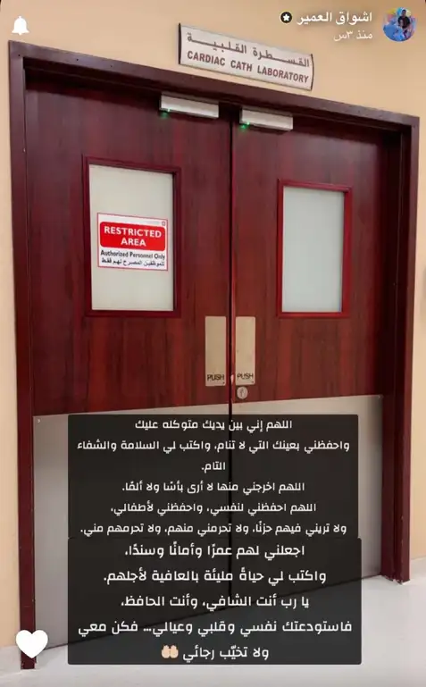 وخضعت أشواق، زوجة سالم الدوسري، لتدخل طبي عاجل داخل قسم القسطرة القلبية، وسط متابعة طبية دقيقة من الطاقم المختص، دون الكشف عن تفاصيل إضافية بشأن حالتها الصحية، التزامًا بالخصوصية.