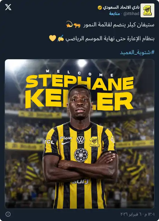 حسم نادي الاتحاد تعاقده رسميًا مع المدافع الكاميروني ستيفان كيلر، قادمًا من أيل ليماسول القبرصي، على سبيل الإعارة حتى نهاية الموسم الحالي.