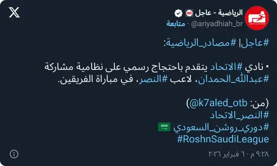 وتصاعدت التساؤلات في الشارع الرياضي بعد تقدم الاتحاد باحتجاج رسمي، طالب خلاله بمراجعة مشاركة الحمدان في مواجهة الجولة الحادية والعشرين من دوري روشن السعودي، التي انتهت بفوز النصر بثنائية نظيفة.