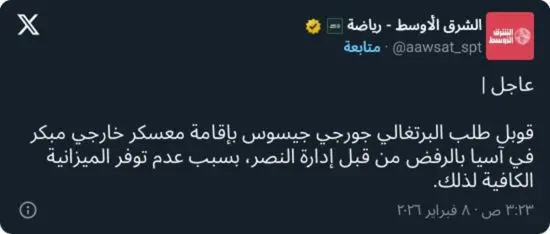 وتتزامن أزمة المعسكر مع تأخر صرف مكافآت الفوز للاعبين، إلى جانب فشل النادي في إبرام صفقات مؤثرة خلال فترة الانتقالات الشتوية، مقارنة بمنافسيه، وعلى رأسهم الهلال، الأمر الذي فاقم من حالة القلق داخل أروقة النصر، وسط مطالبات داخلية بتهيئة ظروف أفضل لضمان ظهور قوي في البطولة الآسيوية.