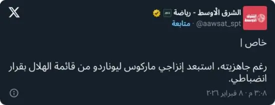 وبحسب مصادر مطلعة، فإن قرار إبعاد ليوناردو لم يكن فنيًا بحتًا، بل جاء بعد أن أبلغ ليوناردو إدارة الهلال بعدم رضاه عن وضعه الحالي، عقب تأكده من توجه الجهاز الفني للاعتماد على الفرنسي كريم بنزيما كمهاجم أول فيما تبقى من مباريات الموسم، وهو ما اعتبره إنزاجي خروجًا عن إطار الالتزام الفني.