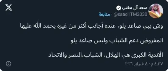 وفي المقابل، استنكر سعد آل مغني، عضو شرف نادي النصر، هذه المطالبات، معتبرًا أنها غير منطقية، حيث قال في تصريح متداول: “وش يبي صاعد يلو، عنده أجانب أكثر من غيره يحمد الله عليها”.