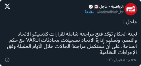ويُذكر أن إدارة الاتحاد كانت قد تقدمت بشكوى رسمية عقب نهاية اللقاء، مطالبة بمراجعة القرارات التحكيمية والاطلاع على تسجيلات الـVAR، في خطوة متعارف عليها ضمن الإجراءات النظامية المتبعة بين الأندية ولجنة الحكام.