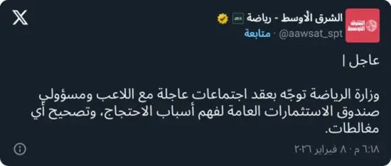 وبحسب مصادر مطلعة، فقد وجّهت وزارة الرياضة بدعوة مسؤولي صندوق الاستثمارات العامة لعقد اجتماع عاجل مع اللاعب، بهدف الاستماع إلى وجهة نظره بشكل مباشر، وفهم أسباب غيابه، ومعالجة أي مغالطات أو التباسات تتعلق باللوائح أو بآلية الدعم المعمول بها داخل المنظومة الرياضية.