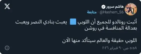 وفي هذا السياق، قال سرور في تصريحاته: «أثبت رونالدو للجميع أن اللوبي الأزرق يعبث بنادي النصر»، في إشارة إلى ما يعتبره تأثيرات خارجية انعكست سلبًا على مسيرة الفريق.
