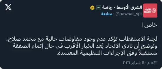 وأضافت اللجنة أن نادي الاتحاد يُعد في مقدمة الخيارات المطروحة في حال تم التوصل إلى اتفاق مستقبلي، استنادًا إلى اهتمامه السابق باللاعب، مع التأكيد أن القرار النهائي يخضع لتقييم فني ومالي شامل.