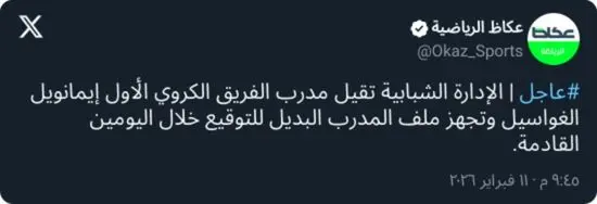 وجاء قرار الإقالة في وقت يحتل فيه الشباب المركز الثالث عشر برصيد 19 نقطة، عقب موسم شهد تراجعًا فنيًا واضحًا، حيث لم يحقق الفريق سوى 6 انتصارات في 23 مباراة، ما وضع الإدارة تحت ضغط جماهيري كبير لإحداث تغيير عاجل قبل مواجهة الأهلي.