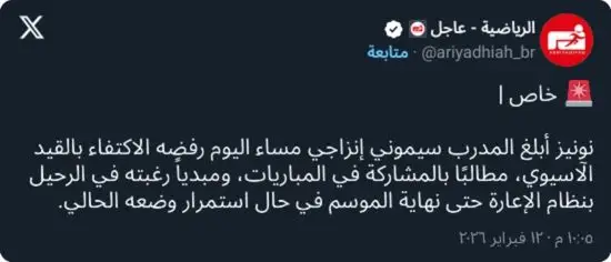 ووفقًا لمصادر مطلعة، أبلغ نونيز المدرب إنزاجي مساء اليوم رفضه فكرة الاكتفاء بالقيد الآسيوي، مؤكدًا أنه انضم إلى الهلال للمشاركة في المباريات والمنافسة داخل الملعب، لا لمتابعتها من المدرجات أو عبر الشاشات.