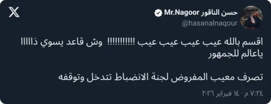 وتابع: “تصرف معيب يجب إيقافه”، مطالبًا الجهات المختصة بالنظر في الواقعة واتخاذ ما يلزم من إجراءات.
