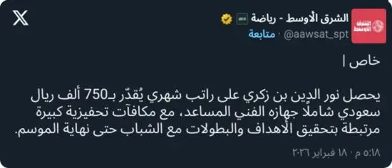 وبحسب مصادر مطلعة، يتقاضى المدرب الجزائري راتبًا شهريًا يُقدّر بنحو 750 ألف ريال سعودي، ويشمل ذلك الطاقم الفني المساعد الذي يرافقه، من مساعد مدرب ومحلل أداء ومدرب لياقة، ضمن حزمة تعاقدية متكاملة.