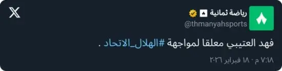 أبدت رابطة مشجعي نادي الاتحاد اعتراضها على إعلان قناة ثمانية تكليف المعلق السعودي فهد العتيبي بالتعليق على مواجهة الكلاسيكو المرتقبة أمام نادي الهلال ضمن منافسات دوري روشن السعودي للمحترفين.