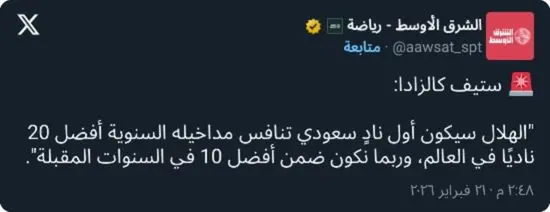 واختتم كالزادا حديثه بالتأكيد على أن منافسة نادٍ سعودي في دوري أبطال أوروبا ليست مستحيلة فنيًا، مشددًا على أن الهلال يمتلك المقومات التي تؤهله لأي تحدٍ قاري أو عالمي.