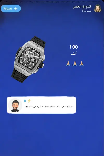 وخلال جلسة الأسئلة، وجّه أحد المتابعين سؤالًا قال فيه: “حلفتك بالله كم سعر ساعة سالم الدوسري البيضاء؟”، لترد أشواق العمير موضحة أن سعرها يبلغ نحو 100 ألف ريال.