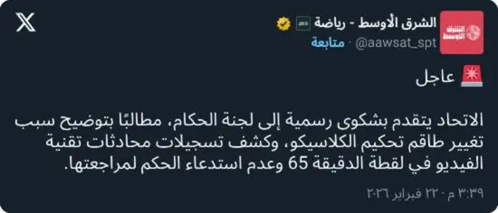 وأكدت إدارة الاتحاد في خطابها أنها تهدف من خلال هذه الشكوى إلى تعزيز مبدأ الشفافية وتوضيح الملابسات للجماهير، مشددة على احترامها الكامل للمنظومة التحكيمية، مع تمسكها بحقها في المطالبة بالإيضاحات النظامية وفق اللوائح المعتمدة.