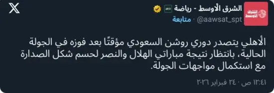 ورفع الأهلي رصيده إلى 56 نقطة، متصدرًا جدول الترتيب بشكل مؤقت، بفارق نقطة عن النصر ونقطتين عن الهلال، في سباق يزداد اشتعالًا مع دخول الجولات الحاسمة من الموسم.