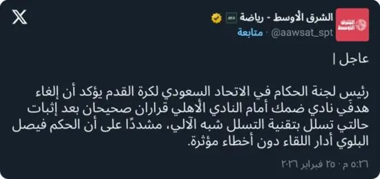 حسمت لجنة الحكام في الاتحاد السعودي لكرة القدم الجدل الدائر حول شكوى نادي ضمك ضد النادي الأهلي السعودي، على خلفية المواجهة التي جمعتهما ضمن منافسات دوري روشن السعودي، والتي شهدت إلغاء هدفين لضمك بداعي التسلل.