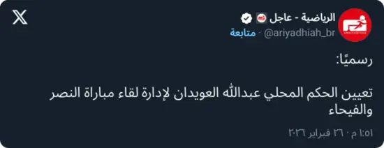 ويأتي هذا التكليف في توقيت حساس من الموسم، مع احتدام الصراع على الصدارة، حيث يدخل النصر اللقاء بطموح مواصلة المنافسة وتقليص الفارق في سباق اللقب.