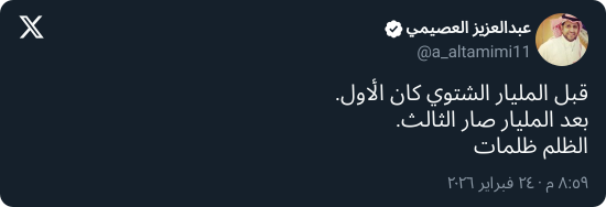 وفي خضم هذه التطورات، علّق الإعلامي عبدالعزيز العصيمي، المعروف بميوله النصراوية، على وضع الهلال برسالة حادة موجّهة إلى الإدارة، قائلًا: “قبل المليار الشتوي كنتم في المركز الأول، وبعده المركز الثاني.. الظلم ظلمات”.