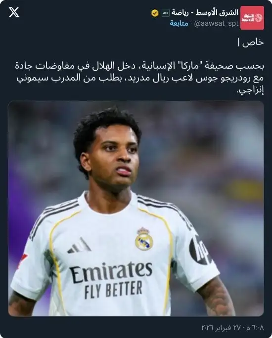 جدير بالذكر أن رودريجو يرتبط بعقد مع ريال مدريد يمتد حتى صيف 2028، ويتضمن شرطًا جزائيًا مرتفعًا للغاية، ما يجعل أي تحرك رسمي نحو ضمه تحديًا ماليًا معقدًا.